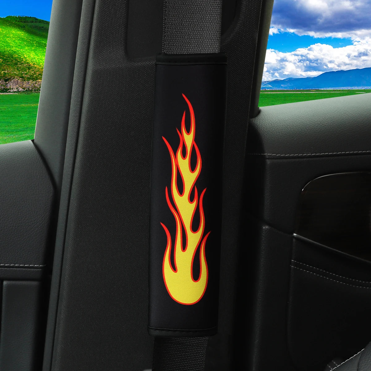 Add a bold, sporty look to your car with this flame seat belt cover. Designed with soft padding to relieve shoulder pressure, it ensures a more comfortable drive while enhancing your interior style. Easy to install and fits most vehicles.