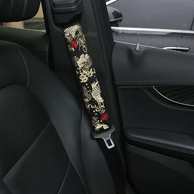 Upgrade your car comfort with these Koi JDM seat belt covers, designed with soft cotton padding to reduce shoulder pressure while driving. Featuring a stylish Japanese koi pattern, they add a unique touch to your interior. Easy to install and fits most vehicles.