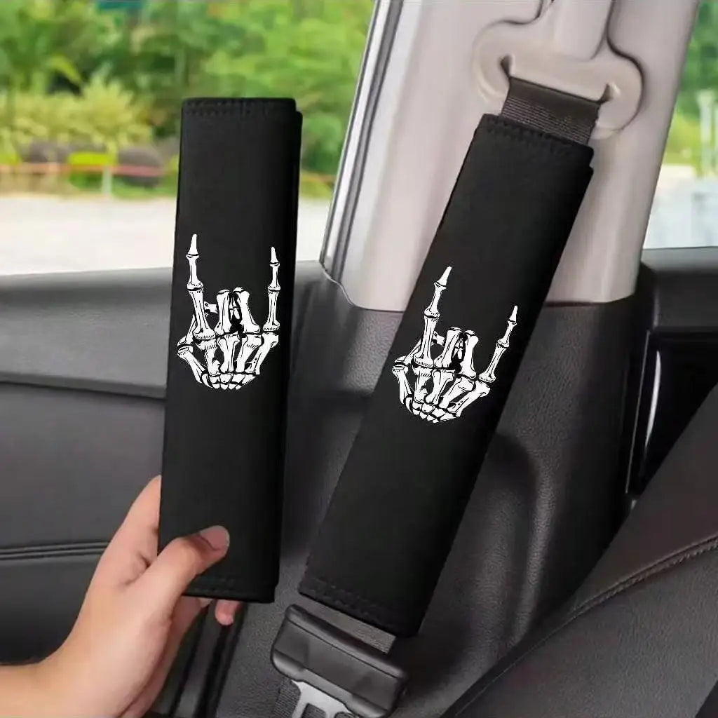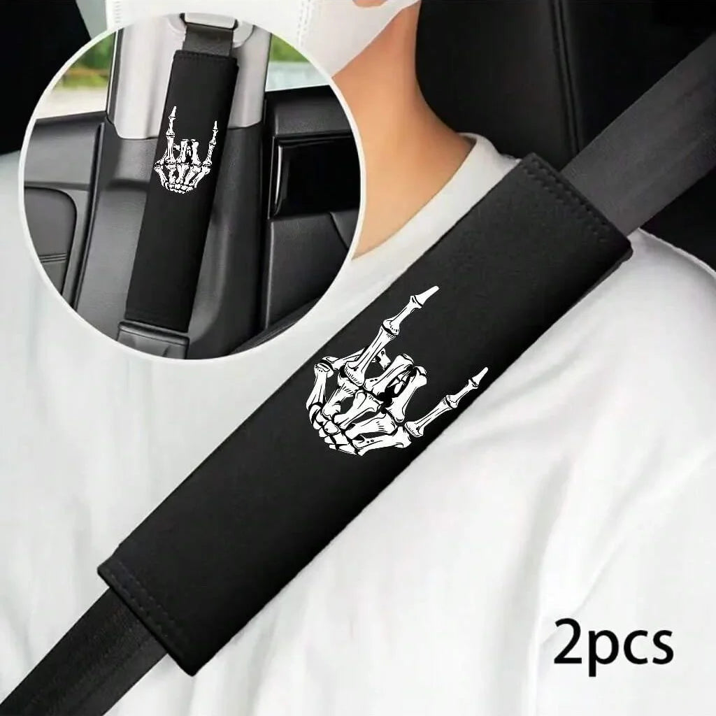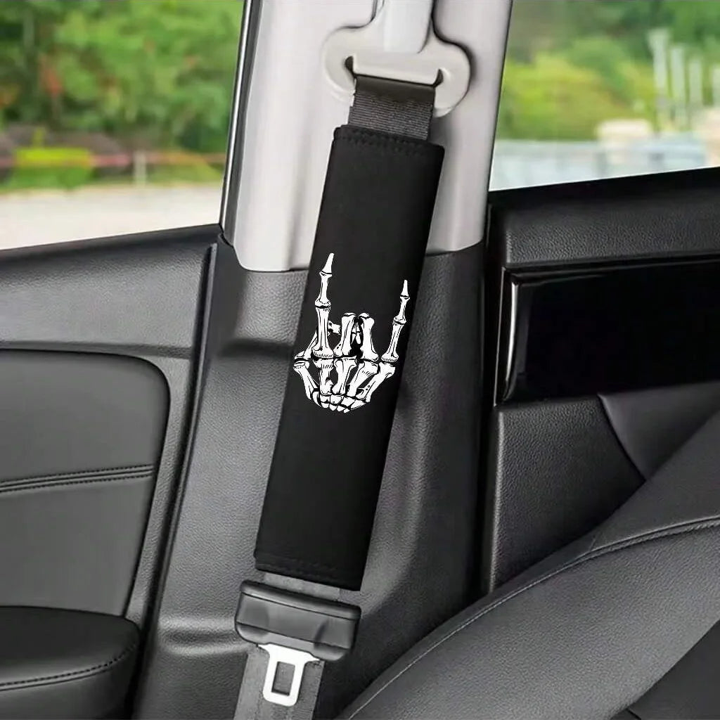 Add comfort and edge to your ride with these skeleton hand seat belt covers. Designed with soft padding to reduce shoulder pressure, they provide a smoother driving experience while enhancing your car interior with a bold, stylish look. Easy to install and fits most vehicles.
